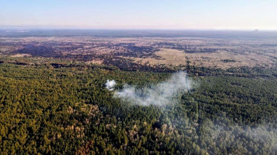 «Вчора, під час вечірнього моніторингового обльоту в Чорнобильській зоні, виявили ось таких 4 «феномена» на площі близько 100 м», - зазначив він і виклав фото, на якому зображено палаючу навколо дерева хвойну підстилку.