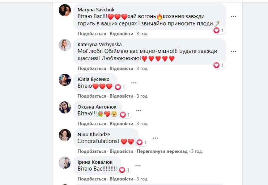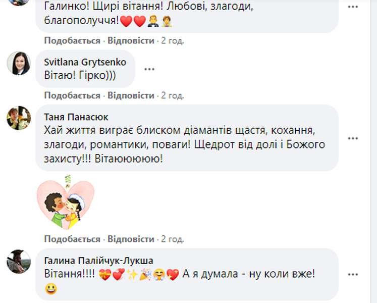 Друзі волинської журналістки почали вітати пару з одруженням у коментарях.