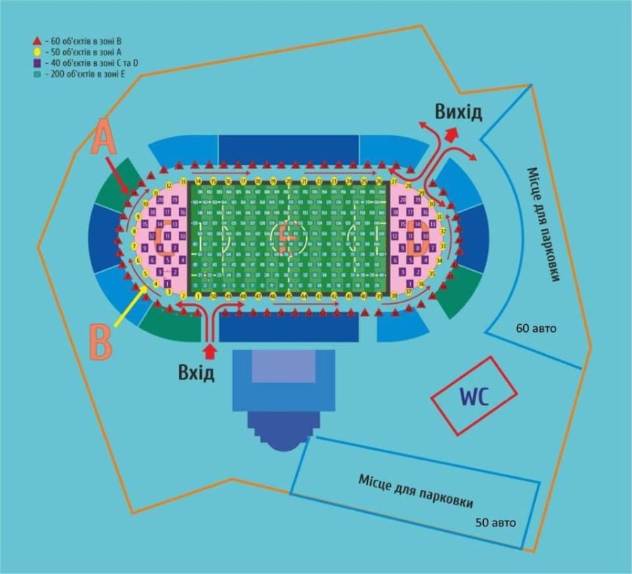 Як пише депутат, територія стадіону повністю огороджена, що дає можливість контролю входу та виходу, з дотриманням максимально дозволеної кількості покупців в середині чаши. З розрахунку 20 метрів квадратних на одного покупця, та відстані між торговими палатками по три метри по вертикалі та горизонталі, на стадіоні може знаходитися одночасно 350 торгових палаток, 500 покупців, та 250 місць для парковки авто за межами.