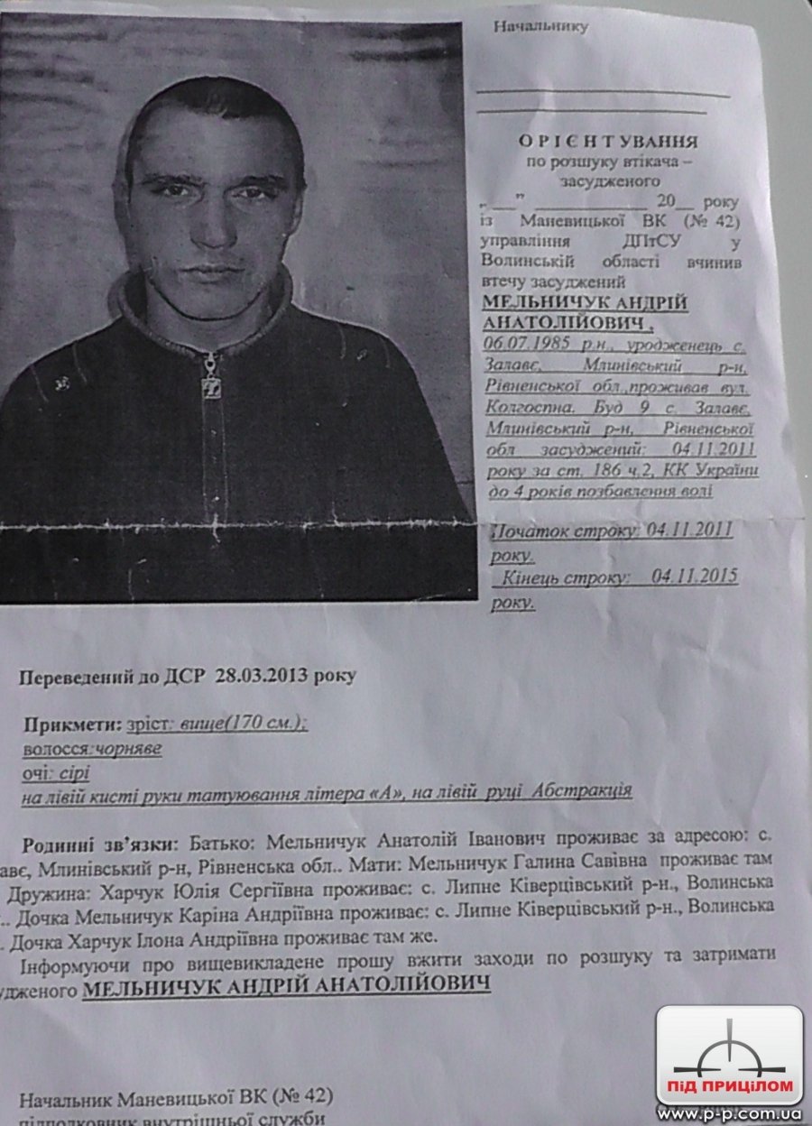 Вони шукають Андрія Мельничука, який 18 червня втік з Маневицької виправної колонії №42.