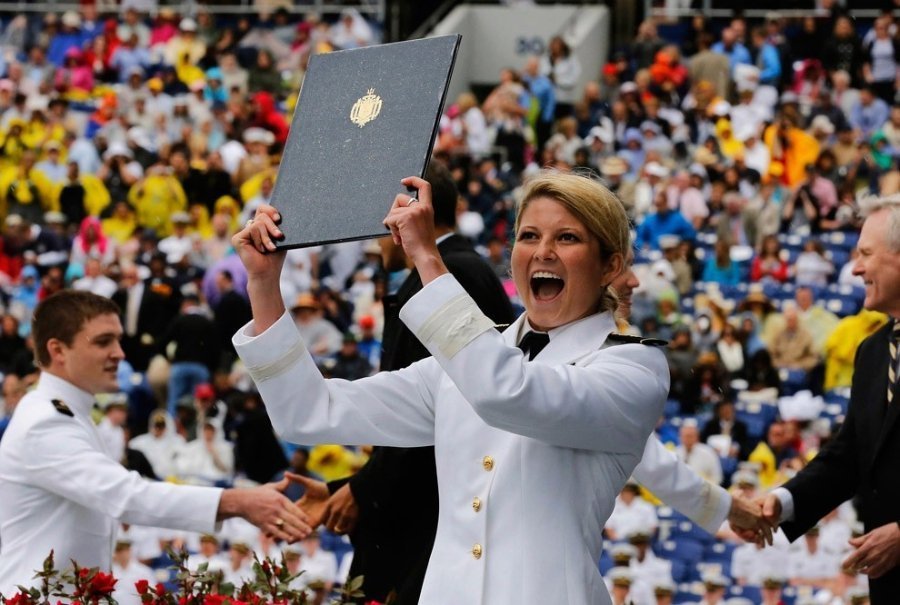 Випускниця Військово-морської академії США на церемонії вручення дипломів та присвоєння офіцерських звань в Аннаполісі, штат Меріленд, 24 травня.