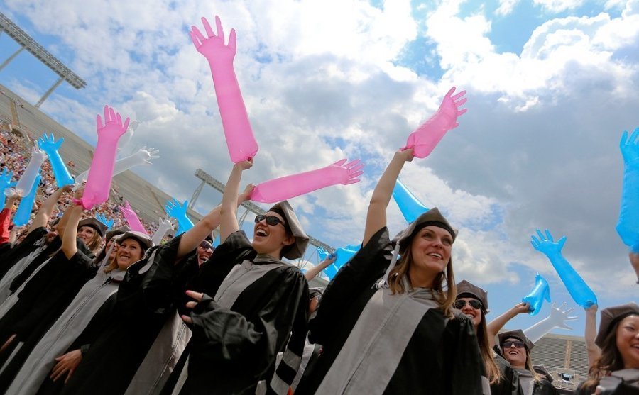 Випускники факультету ветеринарної медицини Політехнічного університету Вірджинії під час випускної церемонії на стадіоні «Lane Stadium» у Блексбергу, штат Віргінія, 17 травня.
