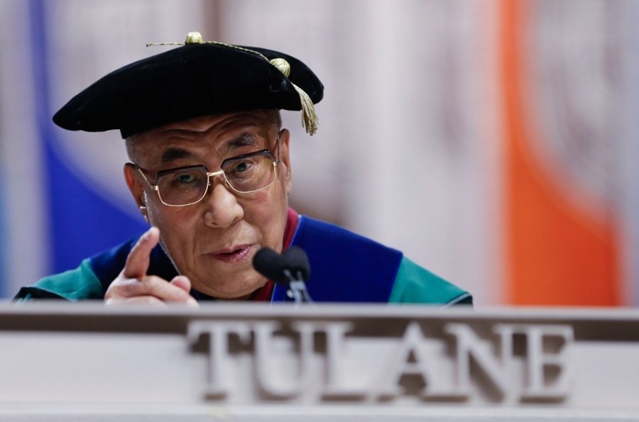 Далай-лама виступає з промовою на 179-й церемонії вручення дипломів в Тулейнському університеті в Новому Орлеані, США, 18 травня.