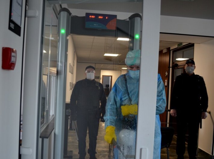 Відповідно до наказу Голови Служби судової охорони, на пунктах пропуску в судах, органах та установах системи правосуддя співробітники Служби продовжують працювати виключно в захисних масках і рукавичках, проводять дистанційну термометрію та візуальний огляд працівників апарату суду та відвідувачів.