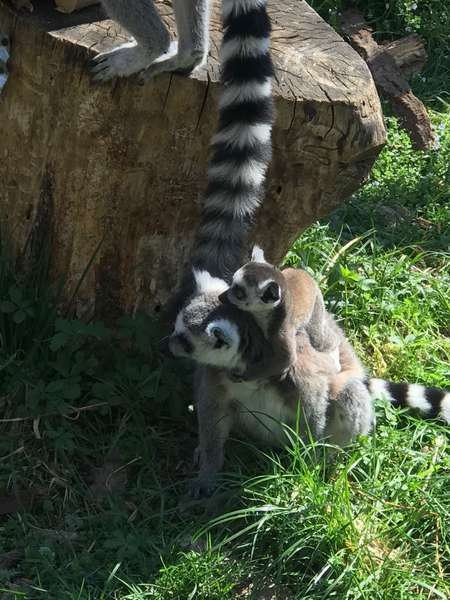 Лемур народився 13 березня, якраз у карантин. Маля гарно росте, ним опікується його сім’я. За своїм чадом слідкує і єнот-полоскун.