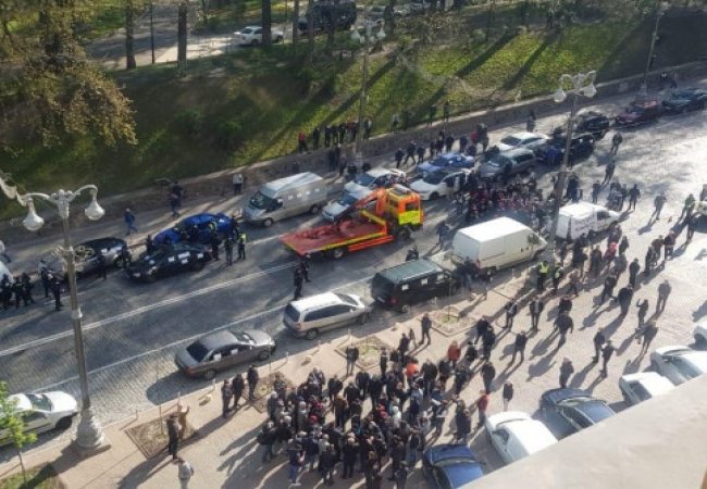 Згодом туди приїхали евакуатори, щоб забрати автомобілі, які заблокували проїжджу частину. Через це між мітингарями та поліцією сталася словесна перепалка.