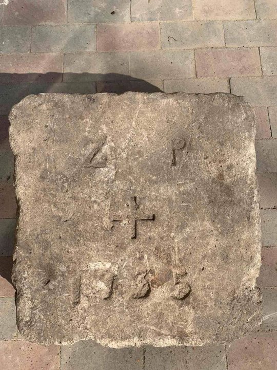 На давній кам’яній плиті зображені написи з датою “Z P + 1935”.
