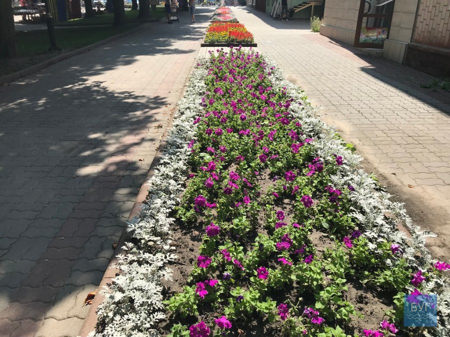 Над озелененням працює чотири жінки. Дві висаджують, прополюють та поливають квіти. У ВУКГ є спеціальна поливальна машина. У спекотні дні підливати клумби необхідно чи не через день.