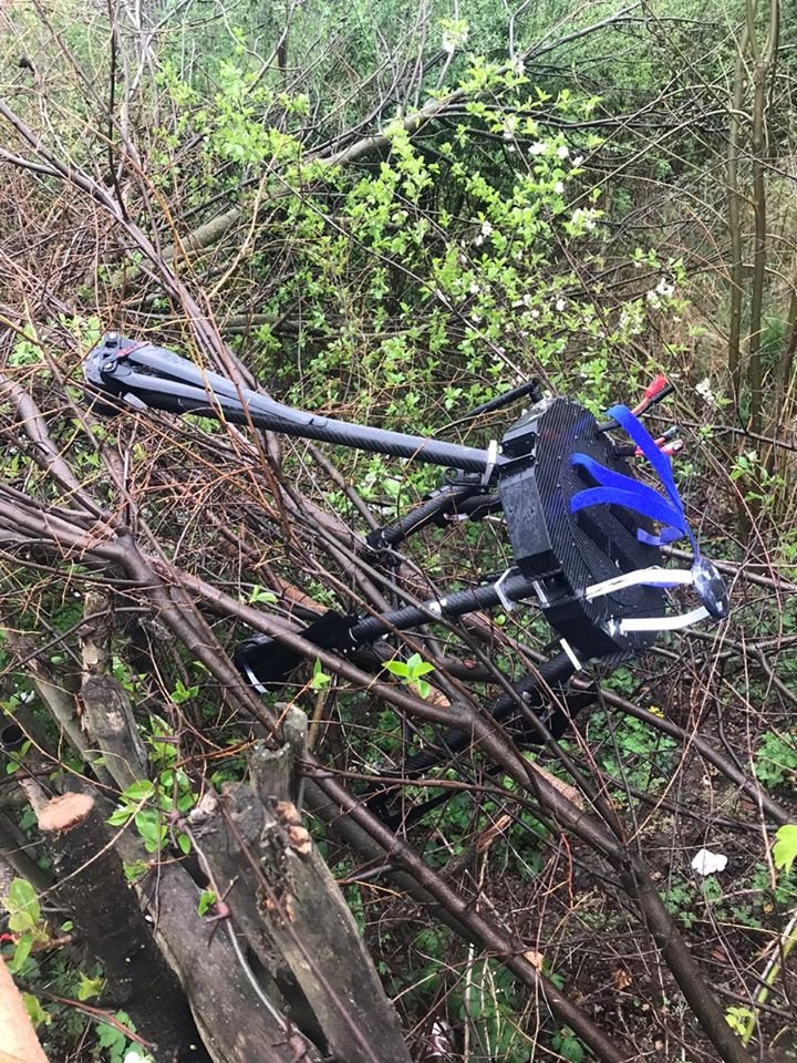 Також, на місці події було виявлено літальний апарат та два пакунки з товарами медичного призначення, а саме – захисні маски.