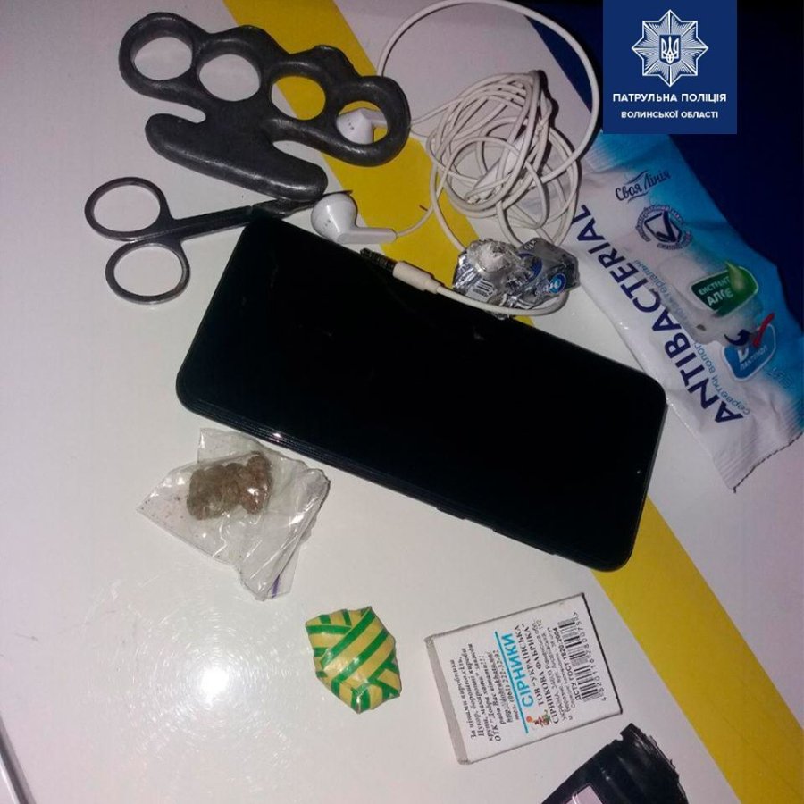 У нього патрульні виявили предмет зовні схожий на кастет, та пакетики з подрібненою речовиною зеленого кольору, схожою на наркотичну, - повідомляє пресслужба патрульної поліції Волині.