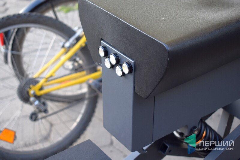 Свій винахід Олег Бондарук обладнав сигналізацією. Якщо спрацьовує — блокується заднє колесо. Тоді 50-кілограмовий транспорт грабіжник зможе хіба що нести в руках. (Подумалося: “але його, виходить, і в квартиру, як велосипед не засунеш...”).