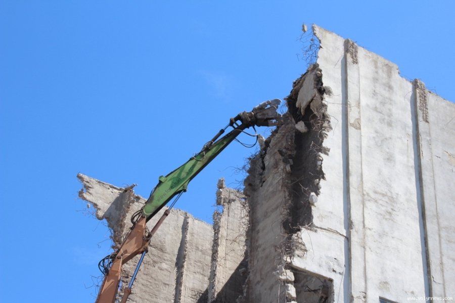 Будівлю на місці колишнього комбінату хлібопродуктів у центрі Луцька уже почали демонтувати.