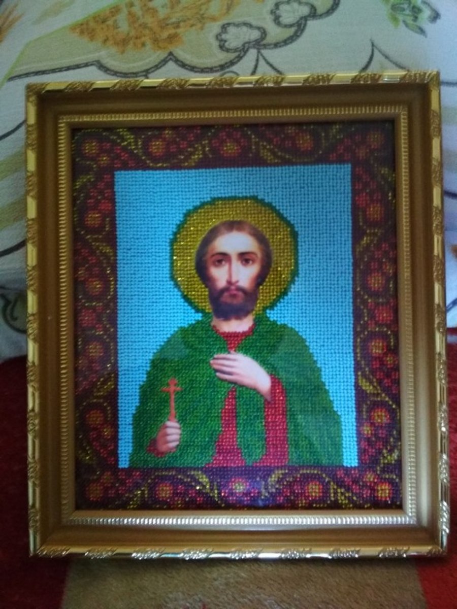 Першою іконою, яку Василь вишив був образ свого ангела-охоронця розміром 15х15. Не легко було спочатку, але зрозумів що і до чого. Потім змережив святий оберіг для тата Анатолія, а для мами ікону Віри, Надії, Любові та їх матері Софії. Одну картину подарував бабусі, а ще дві – брату, який мешкає в Данії. Якось навіть вишив рушник, яким прикрасив власноруч створені образи.