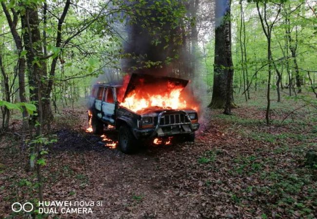 «Лісопорушники, розуміючи, що тепер не зможуть втекти від лісової охорони, підпалили автомобіль, яким планували вивезти незаконно зрізану деревину.
