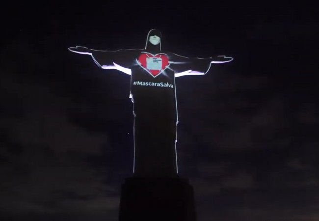Також на 38-метровому монументі висвітилося червоне серце з хештегом #MascaraSalva (у перекладі з португальської маска рятує) і закликом носити маски.