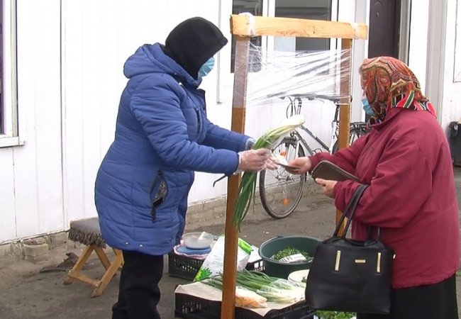 Світлана Мазур, яка понад 20 років торгує на ринку свіжиною розповідає: тричі на день дезинфікує прилавки, час та дату дезінфекції записує у журнал. Перед вагою встановили захисний екран, гроші отримує через віконце.