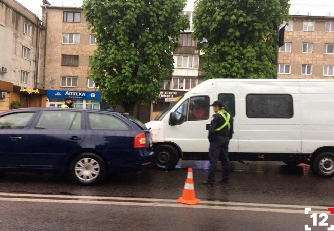 На проспекті Перемоги стукнулися бус і легковий автомобіль. Обидві машини зазнали незначних механічних пошкоджень.