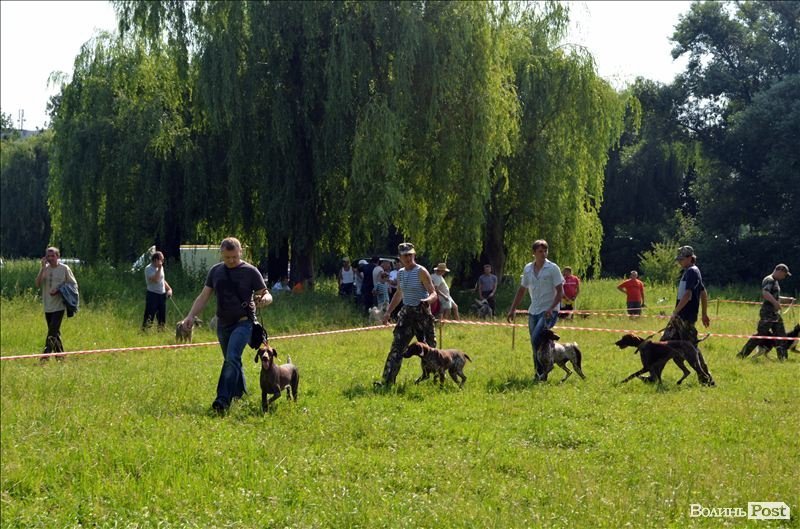 Змагалися породисті мисливські собаки на березі річки Стир біля мосту на вулиці Ковельській. Виставка розпочалася з хвилини мовчання за жертвами Другої світової війни.