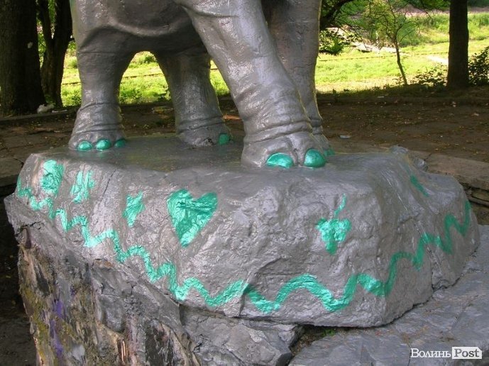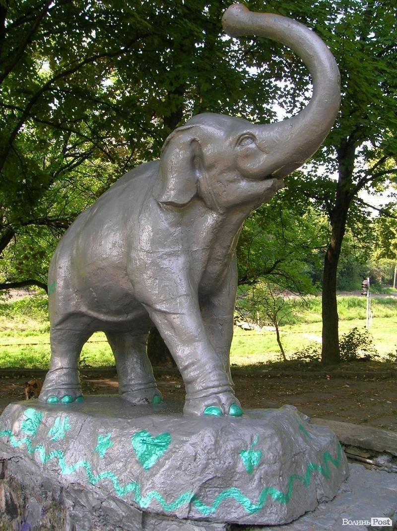У Луцьку вкотре змінився колір фігури слоника, яка стоїть за Палацом учнівської молоді.