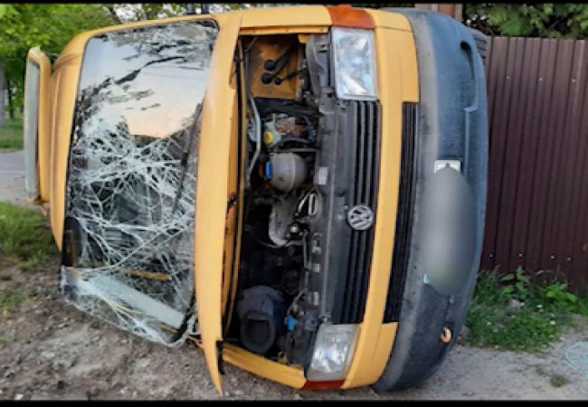 Вчора, 17 травня, увечері у місті Ковелі на перехресті зіткнулися дві автівки. У результаті зіткнення бус перекинувся.