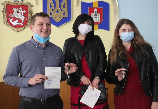 Міський голова Володимира-Волинського Петро Саганюк вручив трьом молодим лікарям комунального підприємства «Володимир-Волинське територіальне медичне об’єднання» ключі від службових квартир.