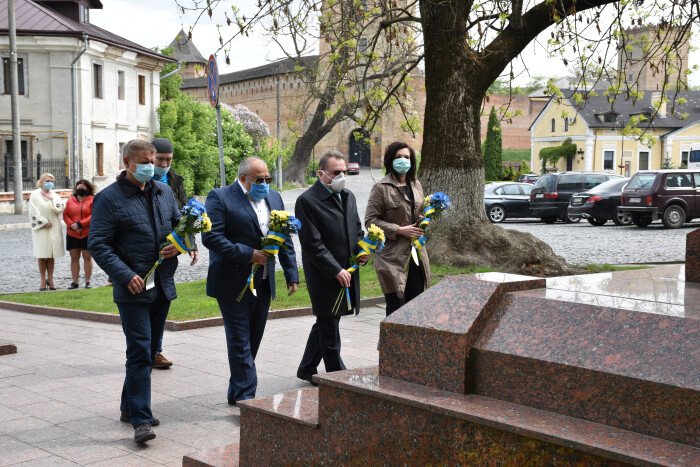 Виконувач повноважень міського голови, секретар міської ради Григорій Пустовіт та заступник міського голови Ірина Чебелюк поклали квіти до пам’ятного знака, після чого хвилиною мовчання вшанували пам’ять невинно загиблих.
