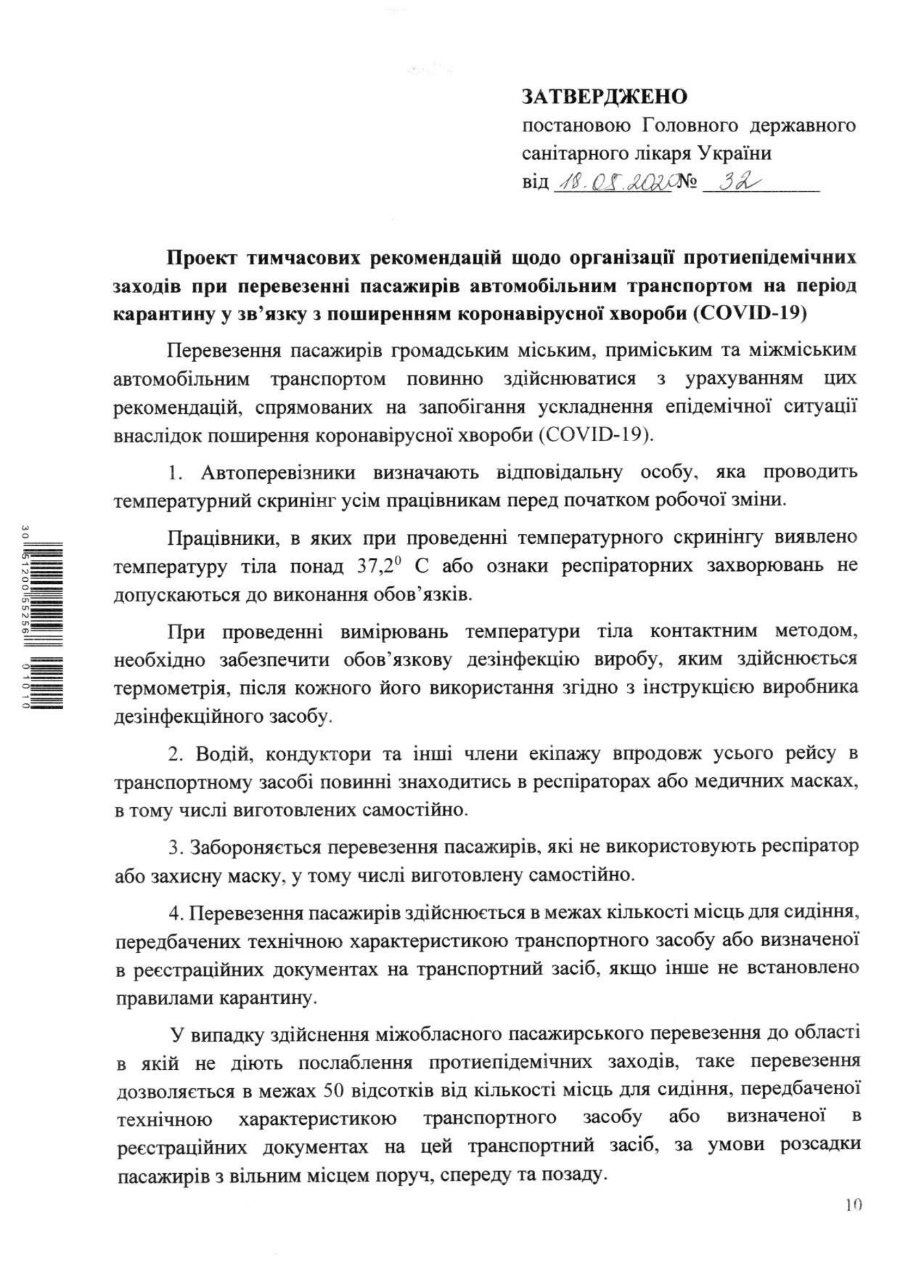 Відповідно до вимог МОЗу, автоперевізники зобов’язані визначити відповідальну особу, яка проводитиме температурний скринінг усім працівникам перед початком зміни.