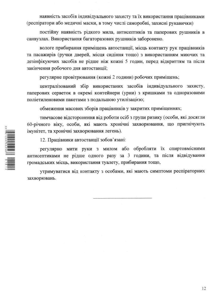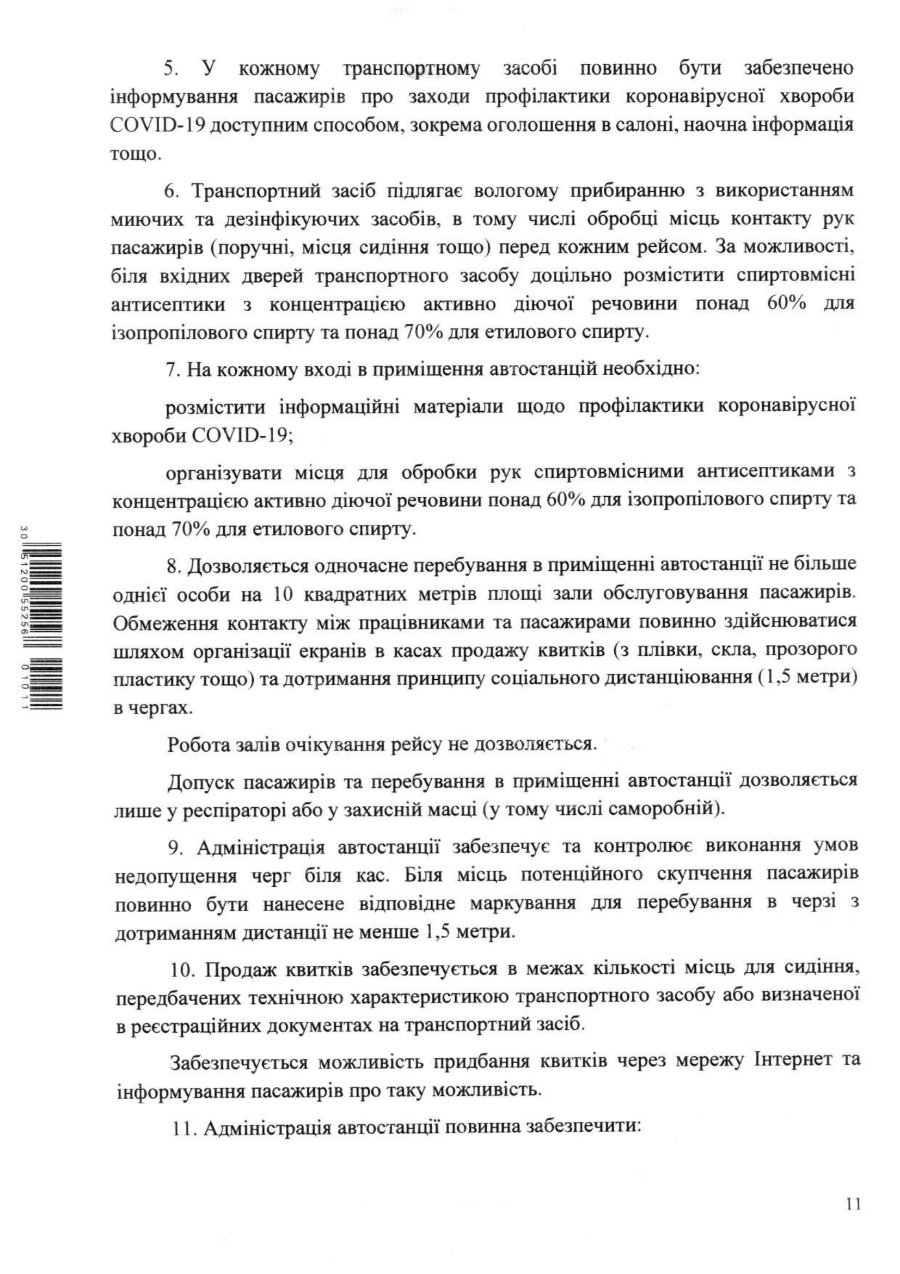 Щодо роботи автостанцій та вокзалів теж прописали певні вимоги.