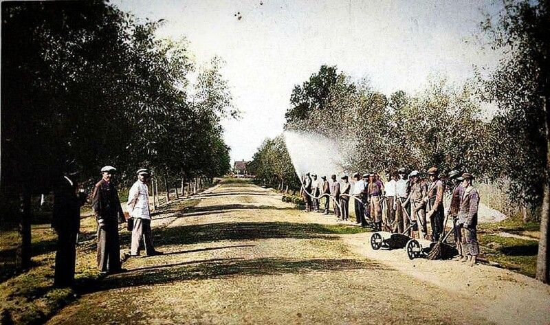 Керівники та працівники організації із благоустрою у м. Любомль на вулиці Володимирській. (Видання І.Крейна. 1930 рік).