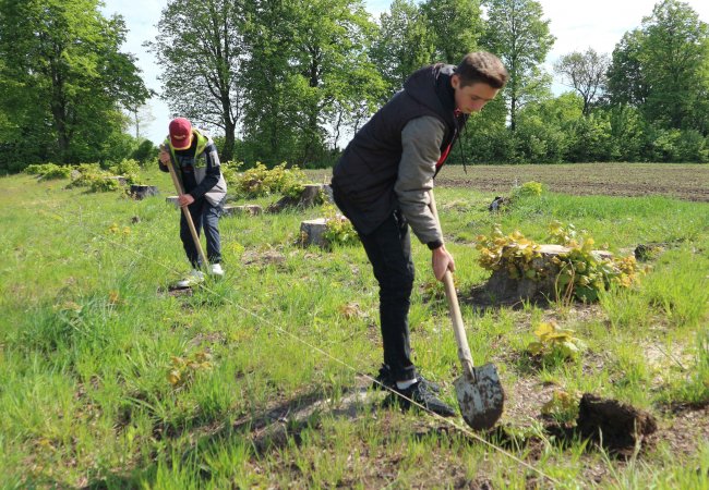 Посадити саджанці павловнії виявили бажання цьогорічні випускники. Разом з ними працювала та керувала процесом вчитель біології та географії Анна Коцун, яка також є керівником шкільного гуртка «Юні лісівники».