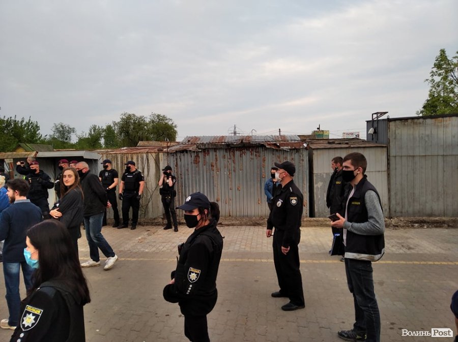 Станом на 19:30 на місці події перебуває чимало представників департаменту муніципальної варти, підприємців та поліції.