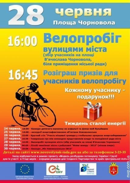 У п'ятницю, 28 червня, в Нововолинську відбудеться велопробіг, кожному учаснику якого обіцяють подарунки.