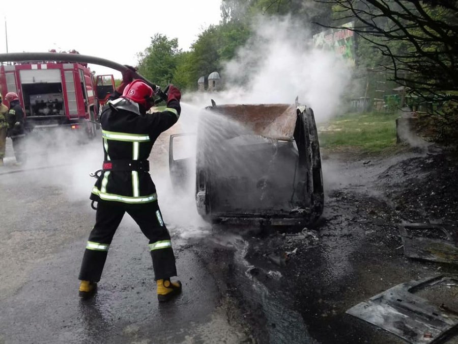 Вогнем знищено автомобіль. Зі слів водія машина загорілася на ходу, він намагався загасити її власними силами, але в нього нічого не вийшло. Причину та збитки встановлюють.