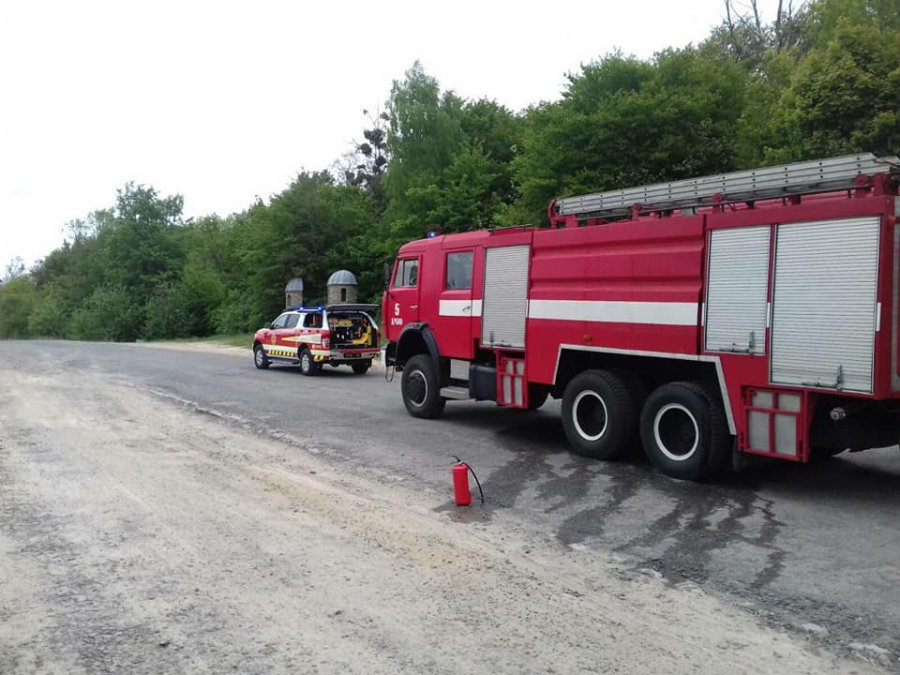 Поблизу села Зелений Гай Дубенського району на Рівненщині вздовж автодороги «Київ - Чоп» горів автомобіль.