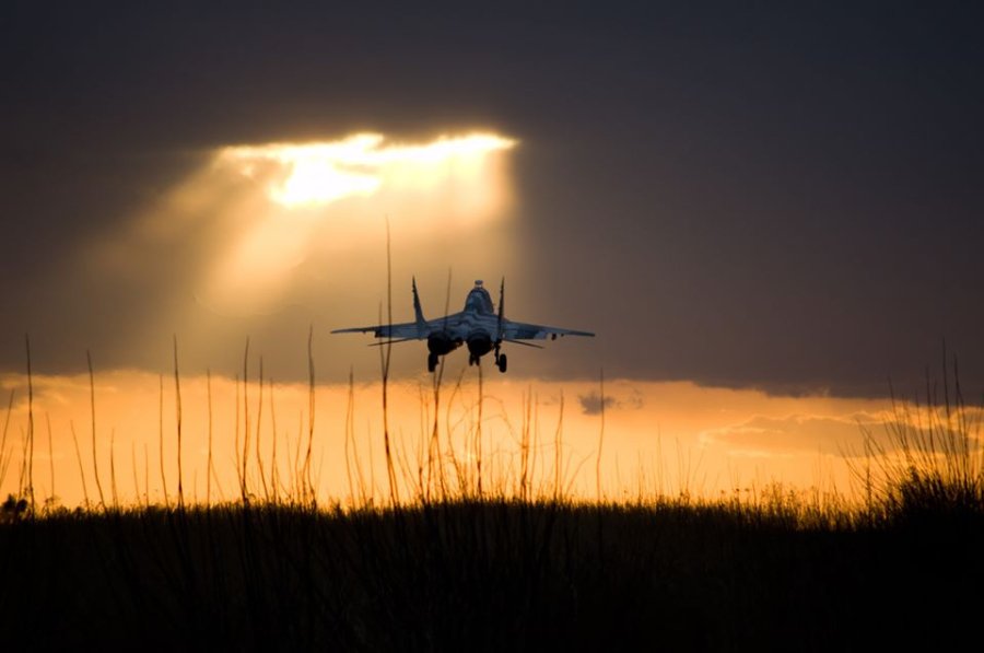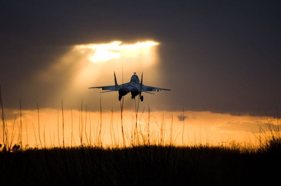 "Захід сонця на Луцькому військовому аеродромі та навчально-бойовий винищувач МіГ-29УБ (двомісна навчально-бойова модифікація, так звана "спарка") зі складу 204-ї Севастопольська БрТА ім. Покришкіна заходить на посадку на його фоні після виконання планового навчально-тренувального польоту під час однієї з планових навчальних льотних змін у даній бригаді в лютому цього року", - йдеться у дописі.