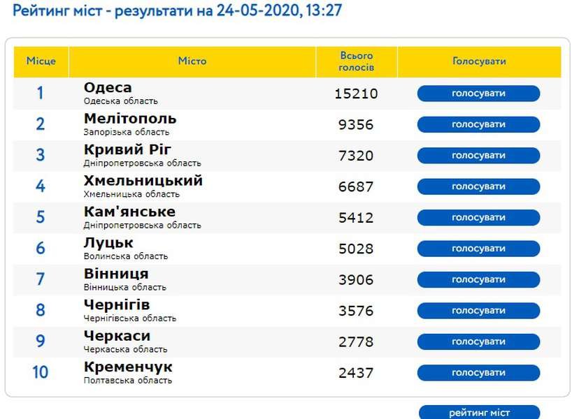 Проголосувати за улюблене місто можна за посиланням - http://mistoua.com.ua.
