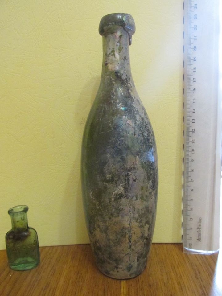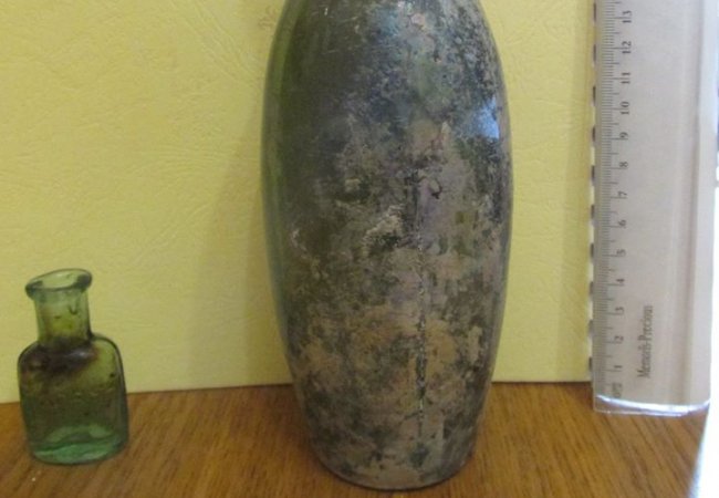 Віктор Баюк зазначив, що дві цілі форми скляного посуду це пізньосередньовічна пляшка гутного скла та аптекарська посудинка з комбінованим маркуванням.