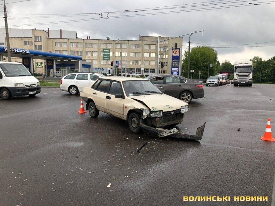 Водій Mercedes-Benz Sprinter завершував маневр зі сторони водоканалу на вулиці Дубнівській, а кермувальник ВАЗ-2109, який їхав зі сторони Київського майдану на зелений сигнал світлофора, пізно зауважив бус, тож після екстреного гальмування автівку занесло.