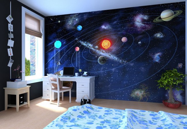 Вдалим вибором є шпалери, які несуть освітню функцію. Наприклад, на них можуть бути зображені географічні карти, математичні формули, геометричні фігури. Стіну легко перетворити на маленький кабінет біології, астрономії чи інших наук. Головне, щоб все це не виглядало нудним.