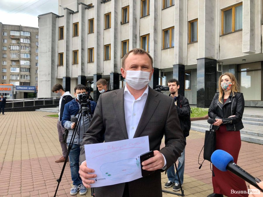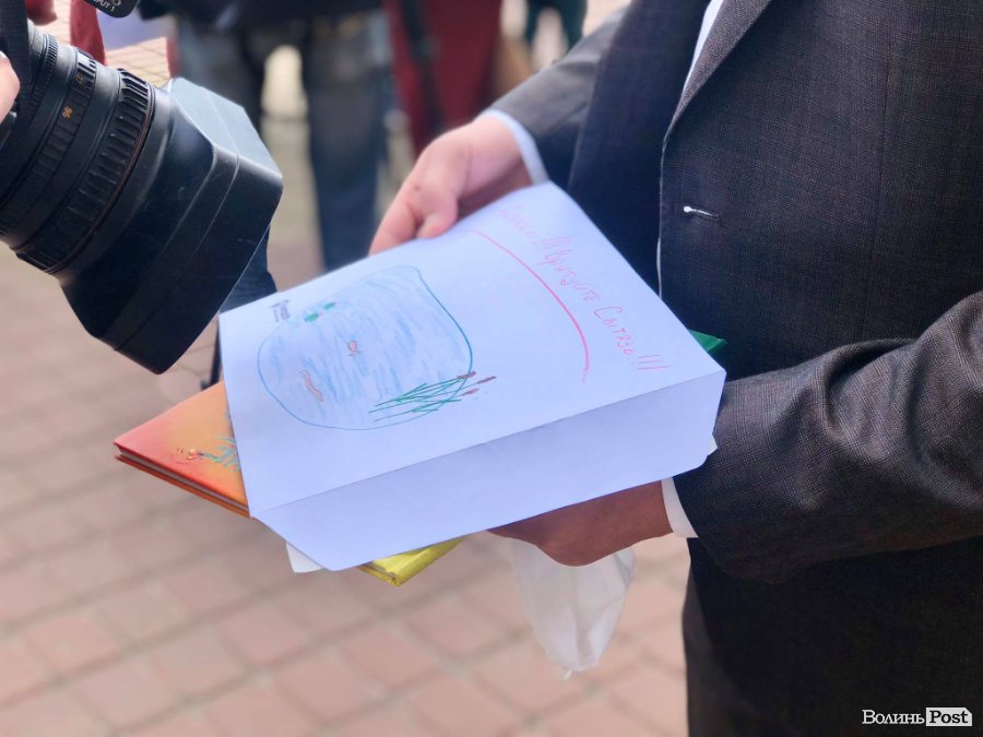 До чиновників прийшли не з порожніми руками, маленькі учасники мирного мітингу підготували лист звернення до начальника управління екології та природніх ресурсів Волинської обласної державної адміністрації ОДА Валентина Кухарика.