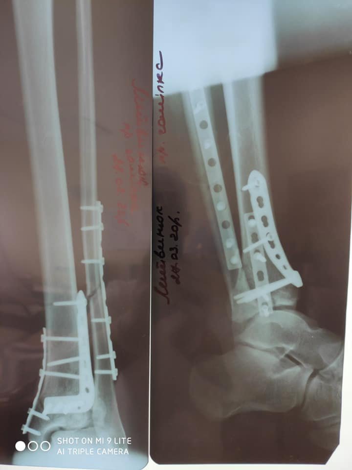 "У відділенні лікувався хворий, який впав з 4-х метрової висоти з переломом обох нижніх кінцівок. Йому успішно зробили оперативне втручання - металоостеосинтез дистальних метаепіфізів правої і лівої нижніх кінцівок з кістковою пластикою", - розповів лікар ортопед-травматолог Леонід Шеремета.