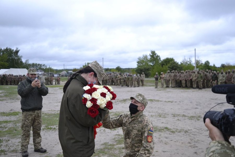 На Рівненському полігоні перед вибуттям в ООС офіцер Роман Цимбал освідчився в коханні нареченій з Волині.