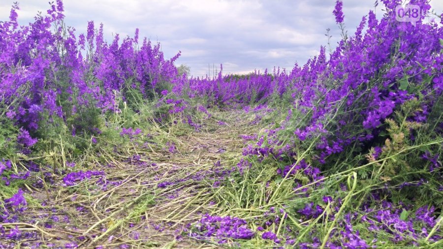 У Теплодарі Одеської області унікальне поле фіолетових квітів дельфініуму перетворюється на облисілу галявину.