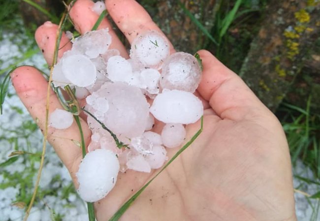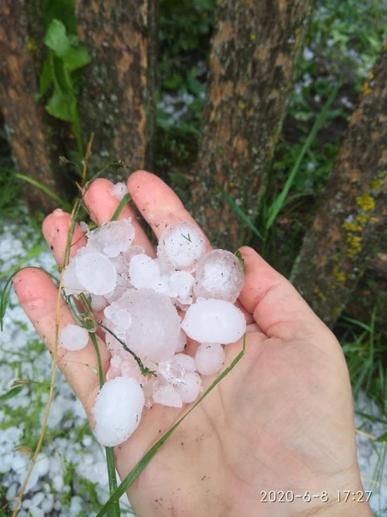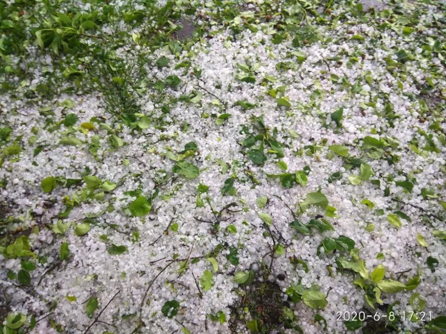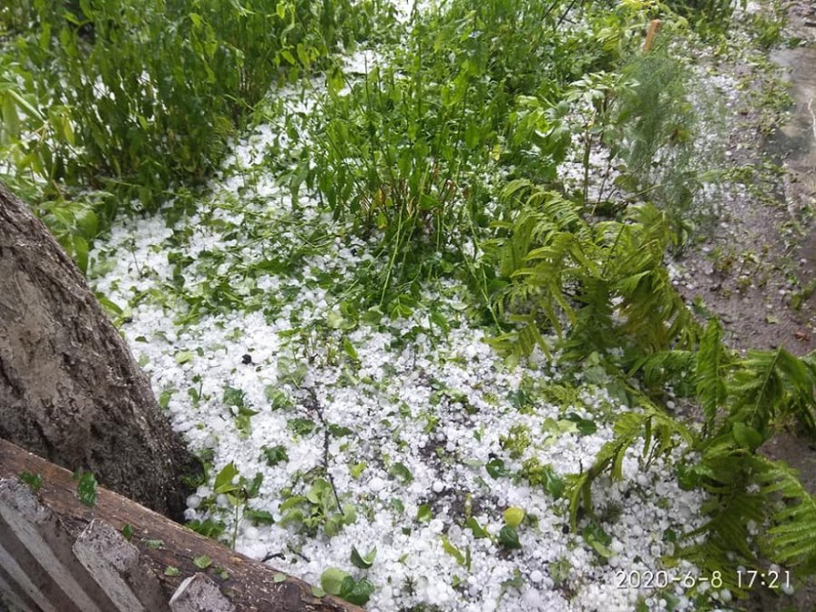 На фото видно, що град випав величезний, подекуди розміром з волоський горіх.
