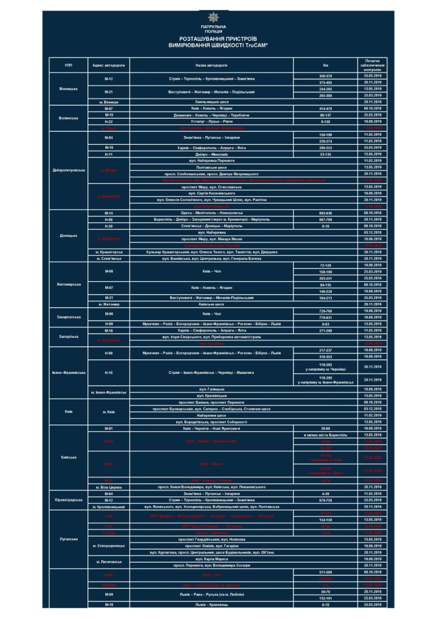 Усього на дорогах України працюватиме 115 приладів TruCAM, а вимірювання здійснюватиметься на 209 ділянках.