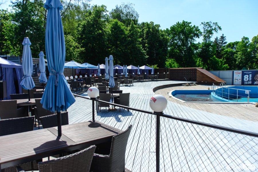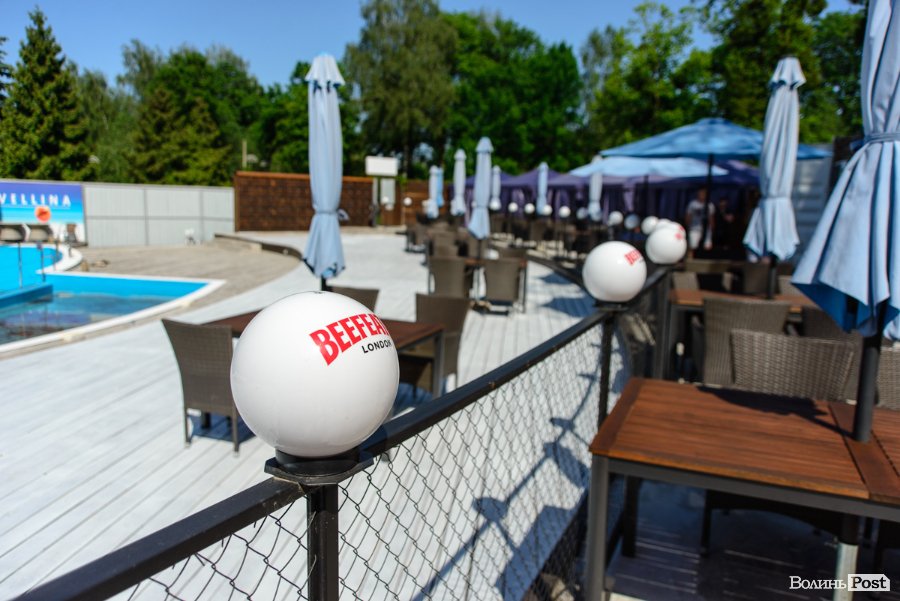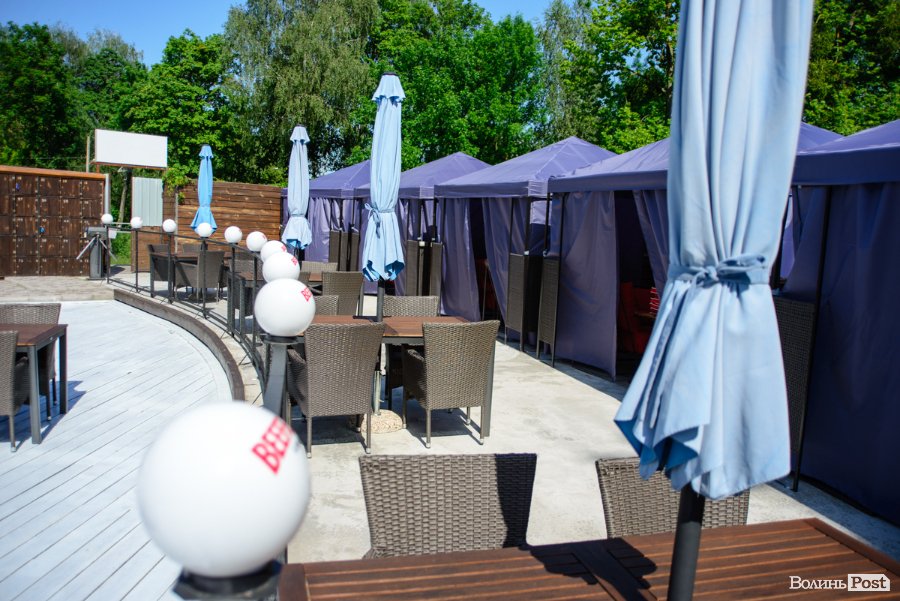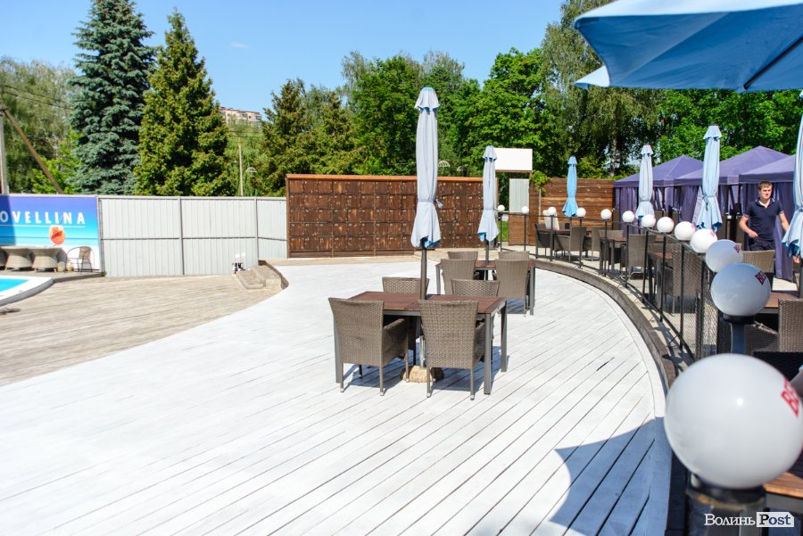 Поки ж працівники встановлюють шатра зі столами, прикрашають територію зеленню, фарбують підлогу, усе ретельно миють та прибирають. На місці поруч з басейном, де раніше розташовували лежаки, поки ставлять столики. Якщо буде дозвіл на відкриття басейну, то лежаки розташовуватимуть на відстані 2 метри один від одного. Якщо ж приходитимуть сім’ї, то буде можливість зсунути їх ближче.