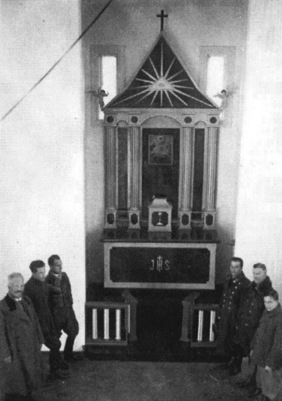 На іншій світлині – комітет будови костелу (каплиці) при головному вівтарі у Шацьку в 1930-ті роки.