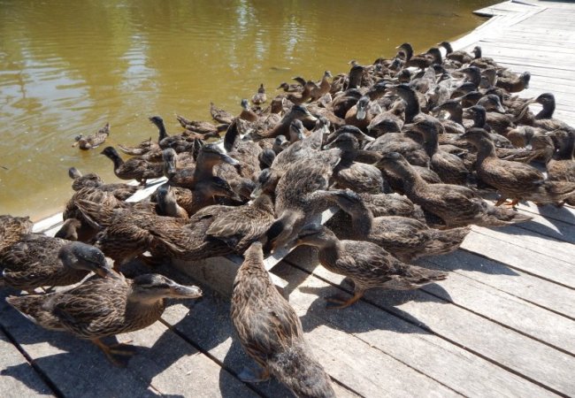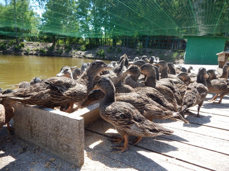 На сьогодні у вольєрі підприємства мешкає понад 200 голів диких качок.