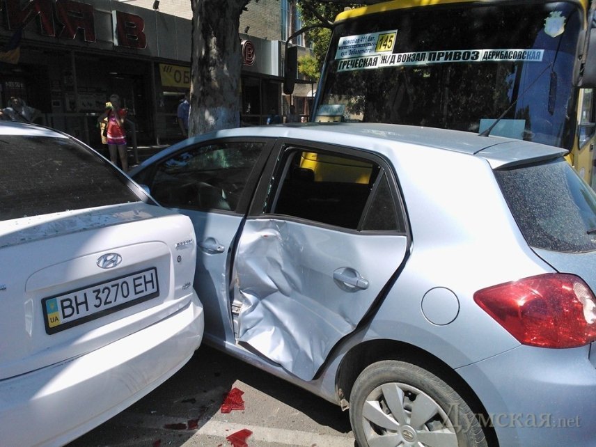 Цей маневр виявився несподіваним для водія маршрутки №145, який їхав там. У результаті автобус «впечатав» японський автомобіль в припаркований біля магазину Hyundai.