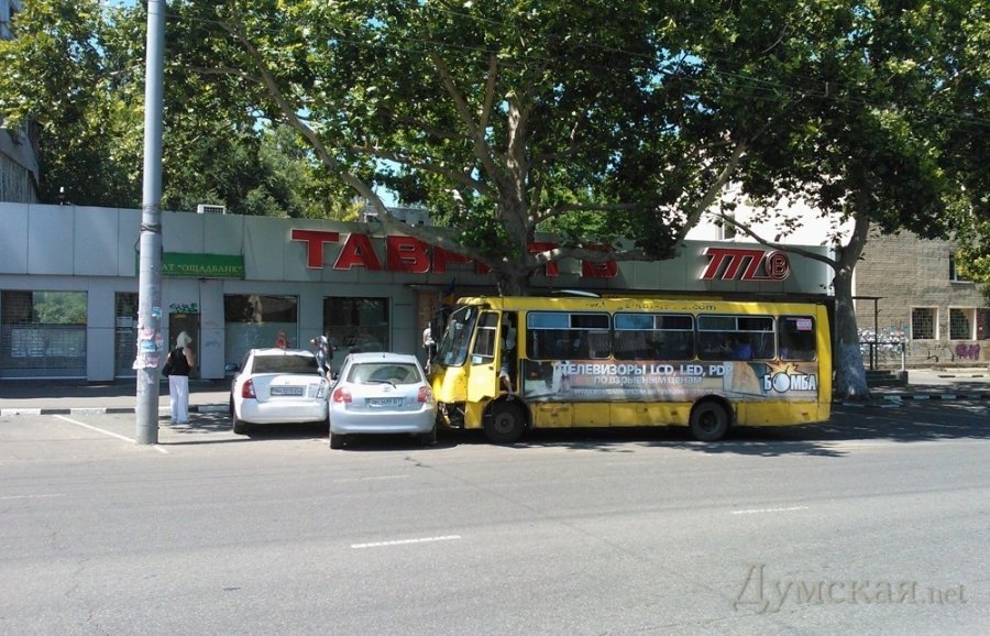 Аварія за участю двох автомобілів та маршрутного таксі сталася в Одесі.